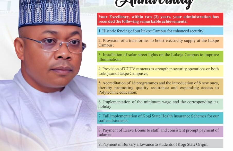 On behalf of the Governing Council, Academic Board, Management, staff and students of Kogi State Polytechnic, Lokoja, I heartily congratulate His Excellency, Alhaji Ahmed Usman Ododo, the…